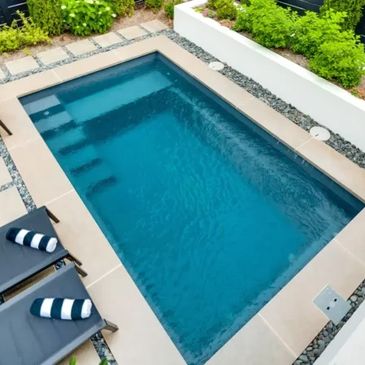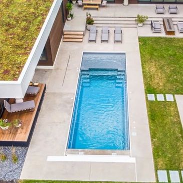 A remarkable pool that can provide luxury and grace in limited backyards. With four length options, it offers a full width bench (10 feet) at the entry area and a generous swimming area inside it.