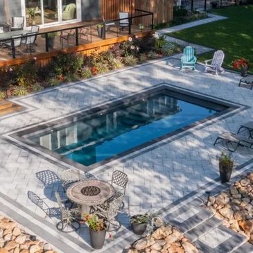 Our most popular pool due to its full-width splash pad at the front of the pool that ends with a stylish step design into a waiting swimming pool. The splash pad area is a little deeper making it perfect for lounge chairs.