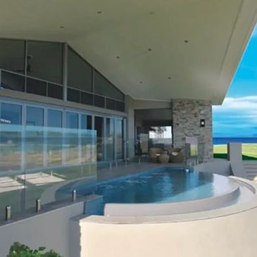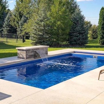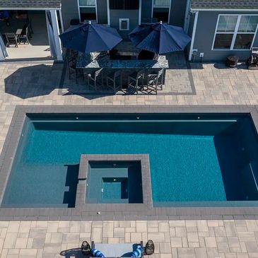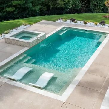 The Glimmer brings artistry to your backyard with its crescent shape and built-in spillover. Its flat-bottom layout is perfect for socializing and lounging, while the infinity edge design adds a luxurious, resort-style touch to any space.